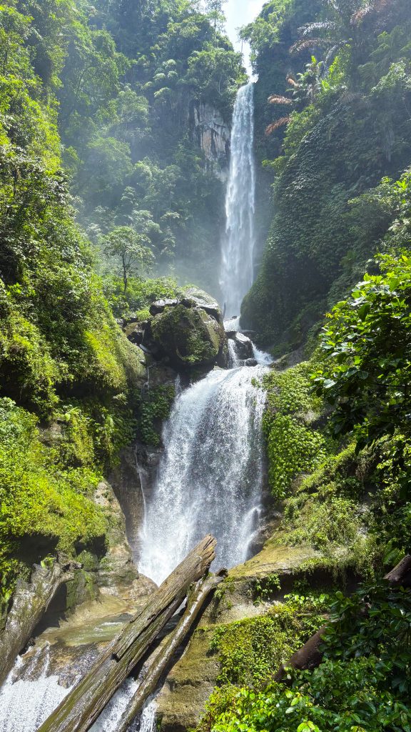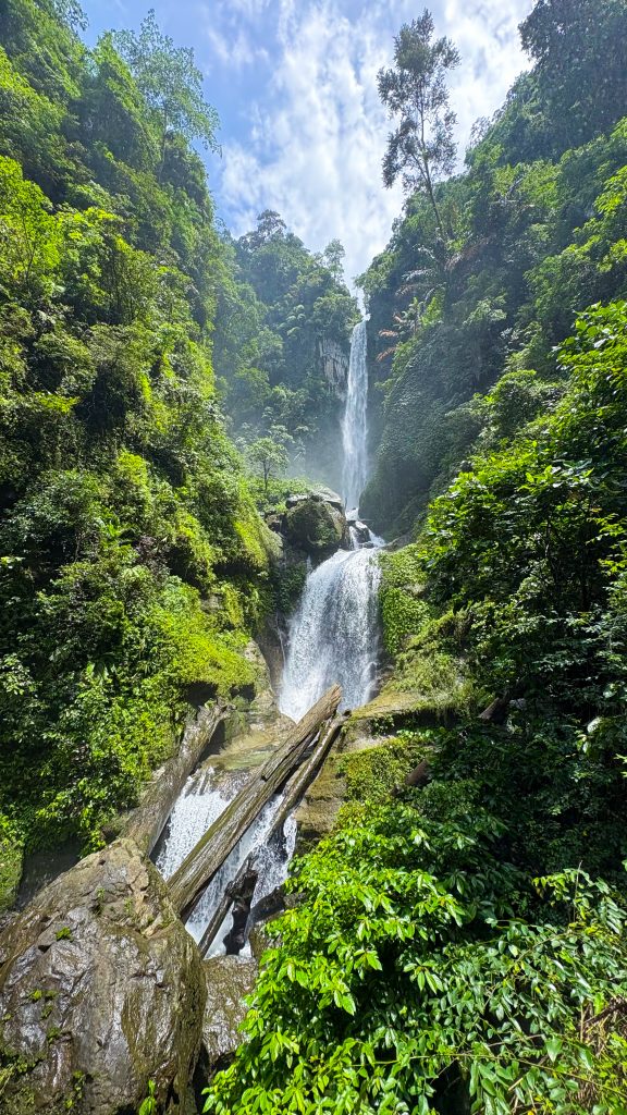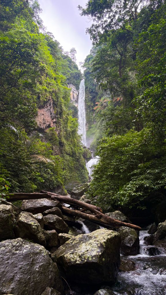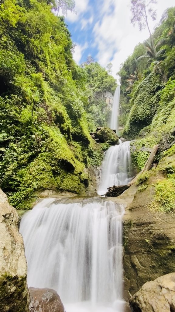 Namun, setiap langkah terasa begitu berharga. Sepanjang perjalanan, telinga akan dimanjakan oleh harmoni suara satwa hutan yang alami. Menjelang tiba di lokasi, gemericik air yang jatuh dari ketinggian mulai terdengar, menetes di antara bebatuan granit di dasar sungai, seolah menyambut setiap pelancong yang datang.