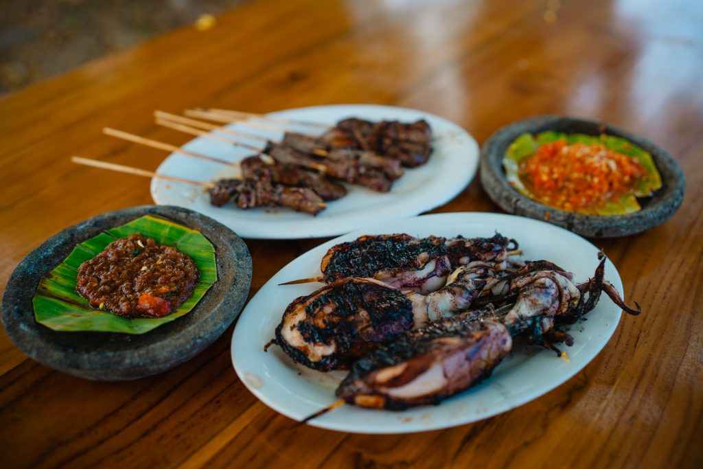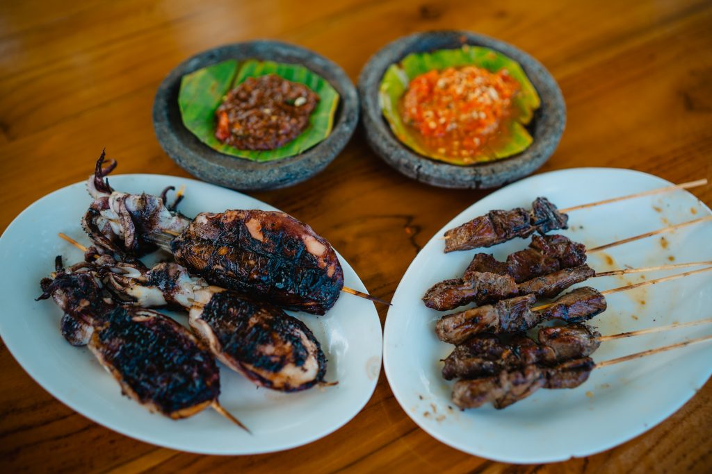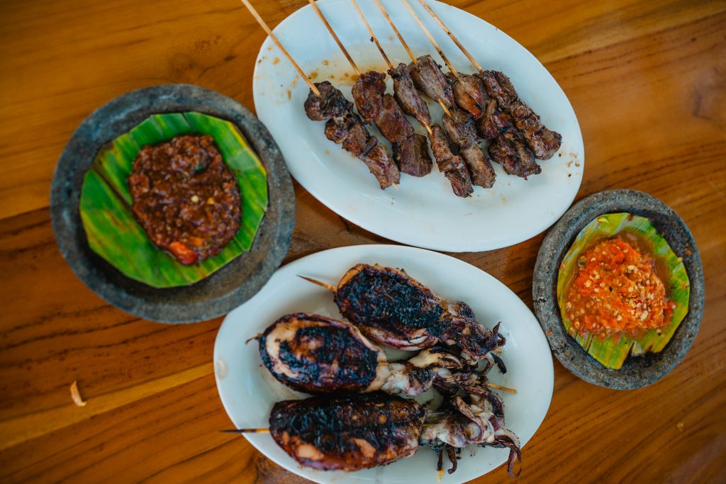 Daging yang akan disate/dibakar akan direndam/marinasi dengan air asam digarami.